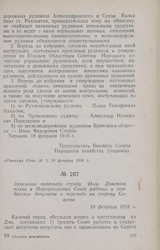 Заявление казачьего отряда 41-го Донского полка в Мариупольский Совет рабочих и солдатских депутатов о переходе на сторону Советов. 18 февраля 1918 г.