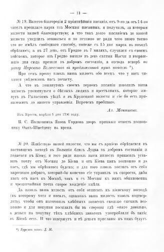 Письма князя Меншикова к адмиралу Федору Алексеевичу Головину 1705 и 1706 г.г. Извествую вашей милости, что мы с армией обретаемся... Принято в Новеграде. Из полка, апреля 17 дня 1706 г.