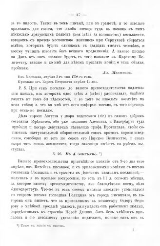 Письма князя Меншикова к канцлеру графу Гавриилу Ивановичу Головину 1708 - 1716 гг. В 4 (письме). Из Могилева, апреля 17-го дня 1708 года
