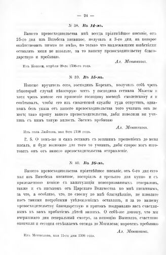 Письма князя Меншикова к канцлеру графу Гавриилу Ивановичу Головину 1708 - 1716 гг. В 15-м. Из села Люйтова, мая 8-го 1708 года