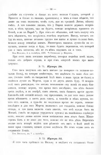 Копии с писем Государя Петра I к князю Меншикову 1707 - 1711 гг. Нумер 20. Из Вильны, в 7 д. октября 1707-ro года // Москов. Главный архив министерства иностранных дел. Связка 1; № 2.