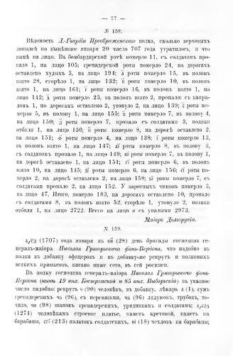 Ведомости, табели и списки пехотных и драгунских полков армии Петра Великого за 1707 - 1708 года. Л.-Гв. Преображенского полка. 20 янв. 1707 г.