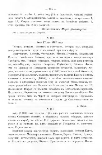 Ведомости, табели и списки пехотных и драгунских полков армии Петра Великого за 1707 - 1708 года. О полках конных и пехотных под командой ген.-пор. Боура. 27 июня 1707 г.