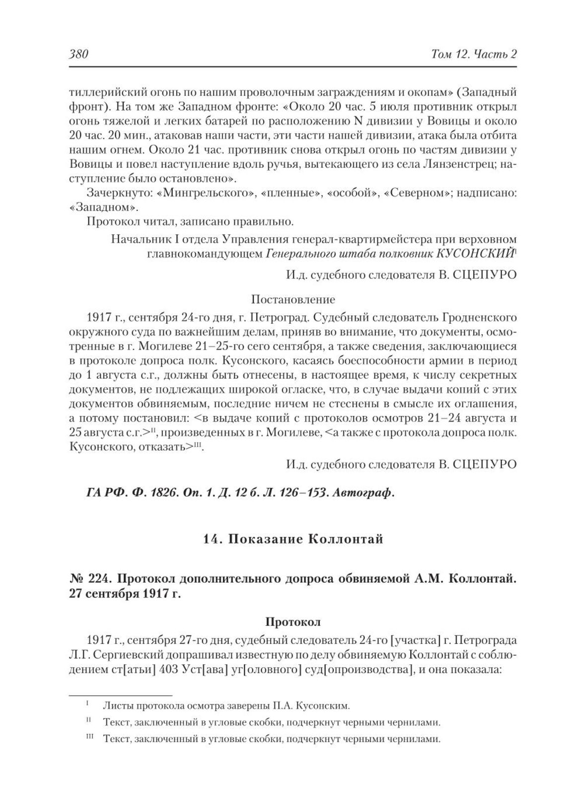 Главная Политические партии и движения Следственное дело большевиков : Материалы Предварительного следстви... Следственное дело большевиков. Сборник документов в 2-х книгах. Кни... Документы Протокол дополнительного допроса обвиняемой А.М. Коллонтай. 27 сент...