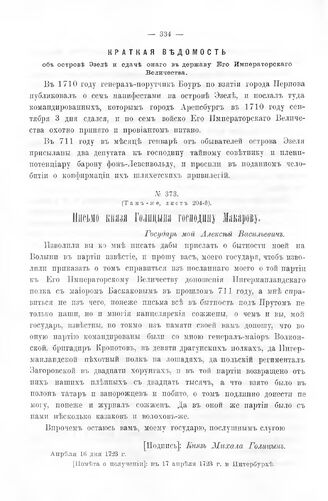 Росписи, выписки, описи, ведомости, указы, рапорты, журналы. Письмо кн. Голицына г. Макарову о бытности в партии на Волыни. Апреля 16 дня 1723 г.