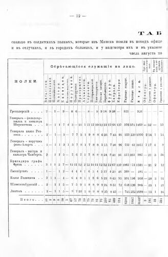 Табель. Сколько в солдатских полках, которые из Минска пошли в поход, офицеров, урядников и солдат на лицо, и т. д. 10 августа 1707 г.