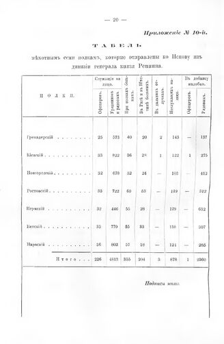 Табель. Пехотные 7 полков, которые отправлены ко Пскову из дивизии генерала князя Репнина