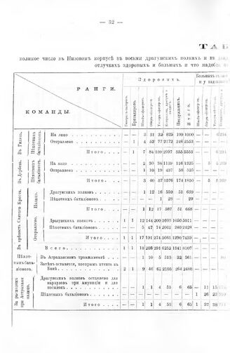 Табель. Сколько в Низовом корпусе в 8-ми драгунских полках и в 20-ти пехотных батальонах обретается каких чинов на лицо и в дальних отлучках здоровых и больных, и что надобно в добавку в полный комплект. 24 апреля 1723 г.