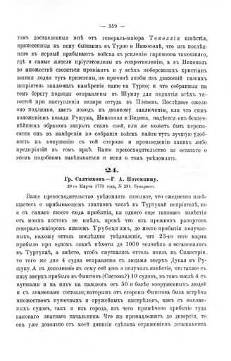 Ордера, письма и донесения графа Румянцева, Г.А. Потемкина и графа И.П. Салтыкова. Гр. Салтыков — Г.А. Потемкину. 29-го Марта 1773 года, № 294. Букарест