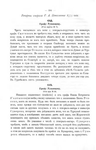 Рапорты генерала Г.А. Потемкина 1773 года. Графу Румянцову. 27-го апреля № 74