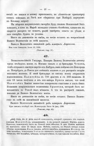 Письма адмирала Апраксина к Государю Петру I. 1709 г. // Каб. дела, Отд. II, кн. 9, стр. 47.