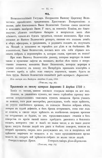 Приложения к письму адмирала Апраксина 5 Апреля 1710 г. // Каб. дела, Отд. II, кн. 11, стр. 54.