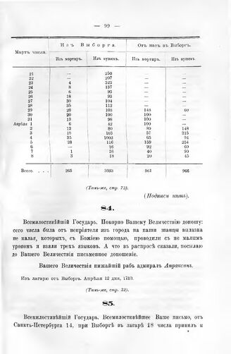 Письма адмирала Апраксина к Государю Петру I. Из лагеря от Выборга. Апреля 22 дня, 1710 г. // Каб. дела, Отд. II, кн. 11, стр. 34.