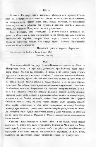 Письма адмирала Апраксина к Государю Петру I. Из лагеря от Выборга. Июня 5 дня, 1710 г. // Каб. дела, Отд. II, кн. 11, стр. 70.