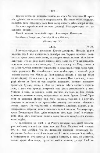 Письма Князя Меншикова к Государю Петру I. № 38. Из Санкт Петербурха, октября 27 дня, 1711 году // Каб. дела, Отд. II, книга 13, стр. 741.