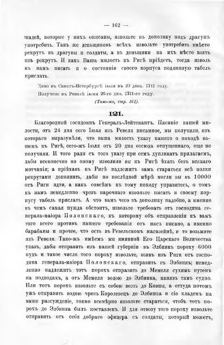 Письма кн. Меншикова к ген. Боуру. Из Санкт-Петербурга, июля дня 29-го, 1711 году // Каб. дела, Отд. II, книга 13, стр. 163.