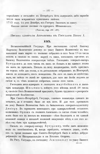 Письма адмирала Апраксина к Государю Петру I. Из лагеря от Санкт-Петербурга в 17 д. июля, 1712 г. [1] // Каб. дела, Отд. II, кн. 15 стр. 5.