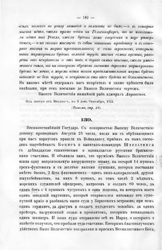 Письма адмирала Апраксина к Государю Петру I. От Выборга, в 17 день сентября, 1712 г. [1] // Каб. дела, Отд. II, кн. 15 стр. 6.
