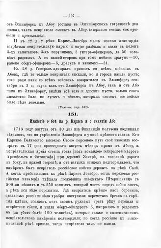 Известие о бое на р. Карнс и о занятии Або. 1713 году августа от 30 дня