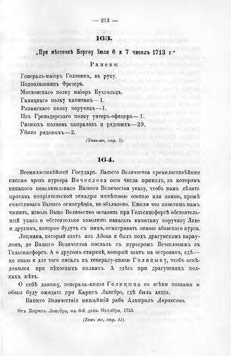Письма адмирала Апраксина к государю Петру I. При местечке Боргоу июля 6 и 7 чисел 1713 г. // Каб. дела, Отд. II, кн. 17, стр. 5.