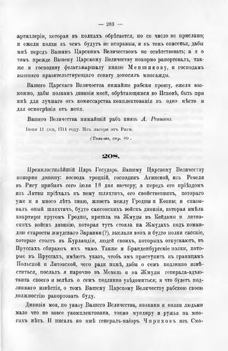 Письма кн. Репнина к Государю Петру I. Июля 21 дня, 1714 году. Из лагерю от Риги // Каб. дела, Отд. II, кн. 21, стр. 84.