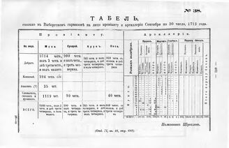 Табель провианту и артиллерии Выборга к 30 сентября 1713 г.