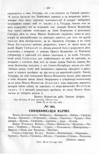 Спецификация маршу // Каб. дела, Отд. II, кн. 21, стр. 108.