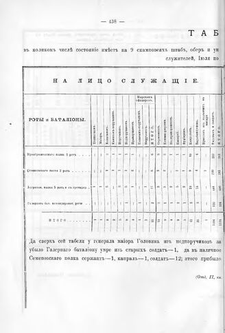 Табель пехотным полкам, находившимся на 9 скамповеях команды ген. Г...
