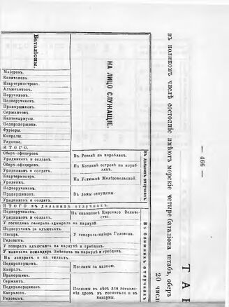 Табель четырем морским баталионам, по сведениям к 20 сентября 1714 ...