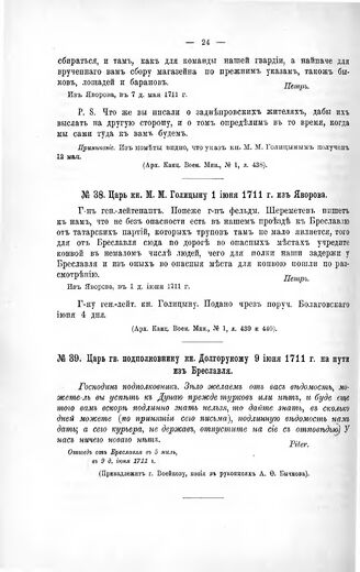 Указы Петра Великого. Царь гв. подполковнику кн. Долгорукому 9 июня 1711 г. на пути из Бреславля