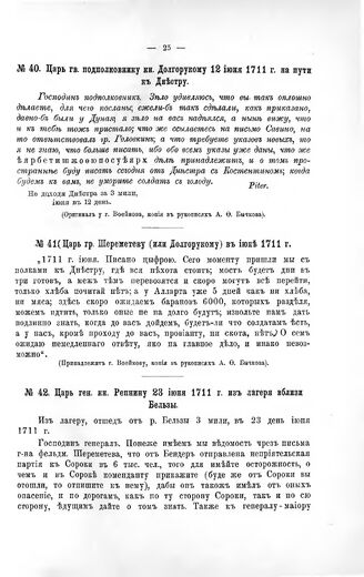 Указы Петра Великого. Царь гр. Шереметеву (или Долгорукому) в июне 1711 г. // Принадлежит г. Воейкову.