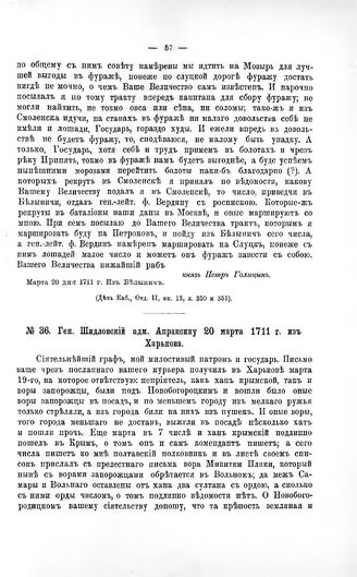 Переписка участников войны. Ген. Шидловский адм. Апраксину 20 марта 1711 г. из Харькова