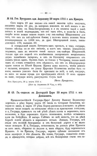 Переписка участников войны. Ген. Бутурлин адм. Апраксину 29 марта 1711 г. из Прилук