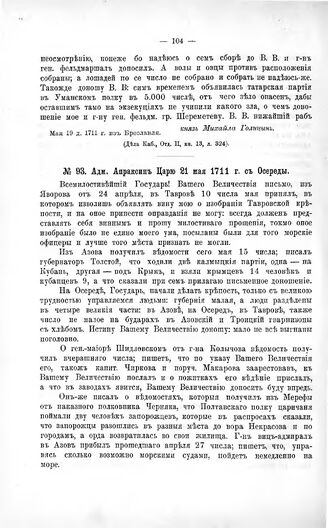 Переписка участников войны. Адм. Апраксин Царю 21 мая 1711 г. с Осереды // Дела Каб., Отд. II, кн. 13, л. 23—25.