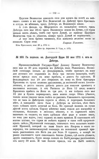 Переписка участников войны. Гв. подполк. кн. Долгорукий Царю 30 мая 1711 г. из за Днестра