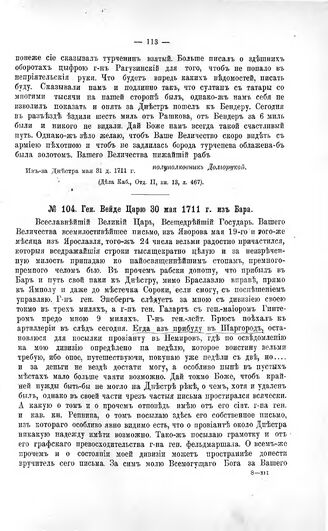 Переписка участников войны. Ген. Вейде Царю 30 мая 1711 г. из Бара // Дела Каб., Отд. II, кн. 13, л. 280.