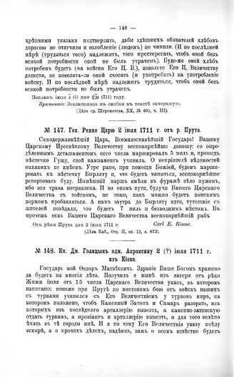 Переписка участников войны. Ген. Ренне Царю 2 июля 1711 г. от р. Прута // Дела Каб., Отд. II, кн. 13, л. 872.