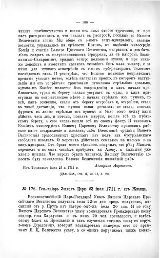 Переписка участников войны. Ген.-майор Эшков Царю 23 июля 1711 г. и...