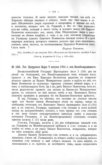 Переписка участников войны. Ген. Бутурлин Царю 7 августа 1711 г. из Новобогородицкого
