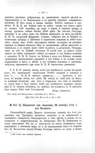 Переписка участников войны. Гр. Шереметев адм. Апраксину 20 сентября 1711 г. из Полонного