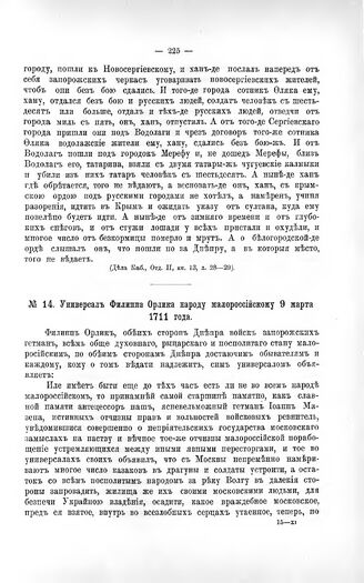 Универсал Филиппа Орлика народу малороссийскому 9 марта 1711 года // Дело гр. Апраксина № 14/300, л. 146—149; Дела кн. Меншикова 1711 года в Академии Наук.