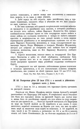 Распросные речи 12 июля 1711 г. о составе и действиях турецкого флота у Азова // Дела Каб., Отд. II, кн. 13, л. 92.