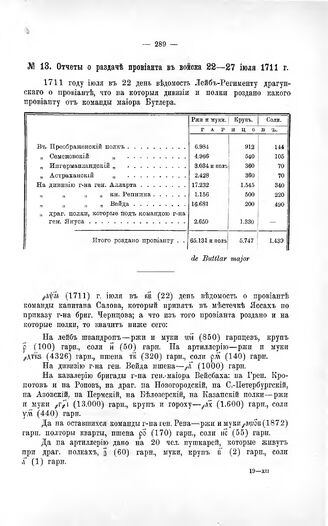 Отчеты о раздаче провианта в войска 22—27 июля 1711 г. // Дело гр. Шереметева, XX, № 405, ч. I.