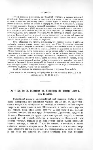 Переписка участников войны. Кн. Дм.М. Голицын кн. Меншикову 24 декабря 1710 г. из Карачева