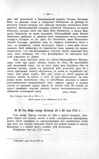 Переписка участников войны. Ген. Вейде майору Сколкову 18 и 20 июня 1711 г.