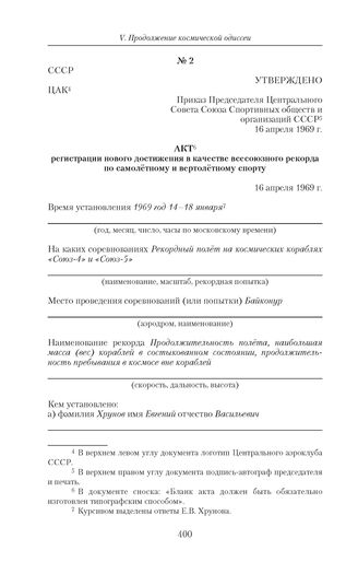Акт регистрации нового достижения в качестве всесоюзного рекорда по самолетному и вертолетному спорту. 16 апреля 1969 г. // 16 апреля 1969 г.