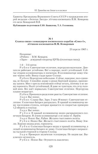 Главная Космос. Время московское Сеансы связи с командиром космического корабля «Союз-1», летчиком-к...