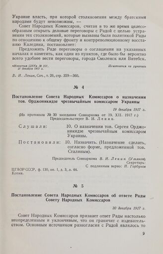 Постановление Совета Народных Комиссаров об ответе Рады Совету Народных Комиссаров. 30 декабря 1917 г.