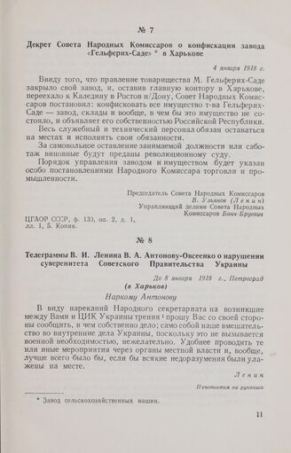 Декрет Совета Народных Комиссаров о конфискации завода «Гельферих-Саде» в Харькове. 4 января 1918 г.