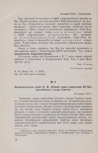 Главная Октябрьская революция и установление советской власти в республиках... Великая Октябрьская социалистическая революция на Украине Великая Октябрьская социалистическая революция на Украине. Февраль ... Документы Заключительное слово В.И. Ленина перед закрытием III Всероссийского...
